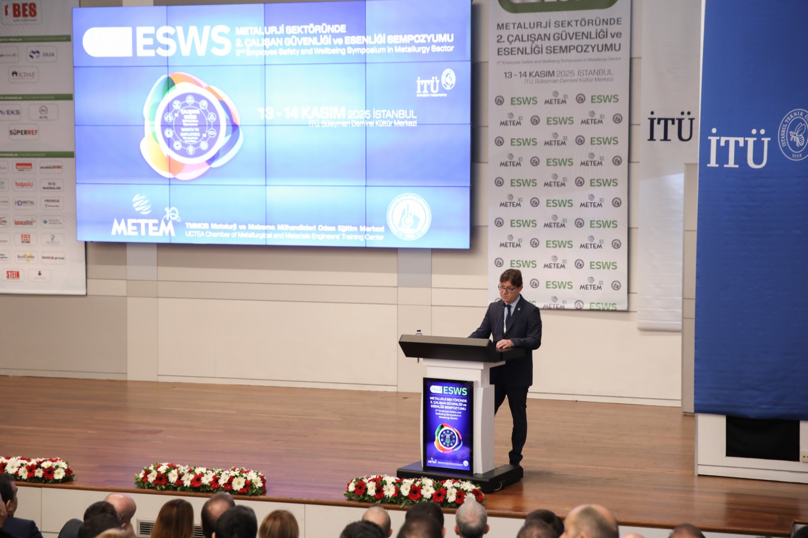 Sektörde "İş sağlığı, çalışan güvenliği ve esenlik" konularını bağlantısallık perspektifiyle ele alan sempozyum; ESWS2025 Yürütme Kurulu Başkanı Barış YEŞİLYURT, METEM Yürütme Kurulu Başkan Vekili Bülent YILDIRIM ve TMMOB Metalurji ve Malzeme Mühendisleri Odası Yönetim Kurulu Başkanı Ahmet İrfan TÜRKKOLU’nun açılış konuşmalarıyla başladı.