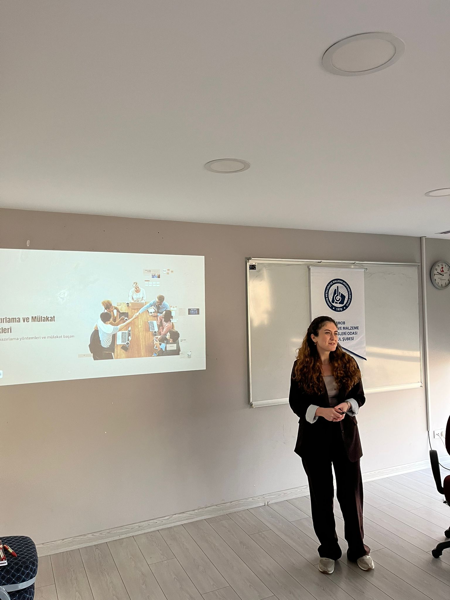 6 Aralık 2025 Cumartesi günü, İstanbul Şube binamızda İnsan Kaynakları Uzmanı ve Danışmanı Buse Türkoğlu’nun sunumuyla “CV Hazırlama ve Mülakat Teknikleri” seminerimizi gerçekleştirdik. Üyelerimizin ve öğrencilerimizin yoğun katılımıyla gerçekleşen etkinlikte, işe alım süreçlerine dair merak edilen birçok konu detaylı şekilde ele alındı.