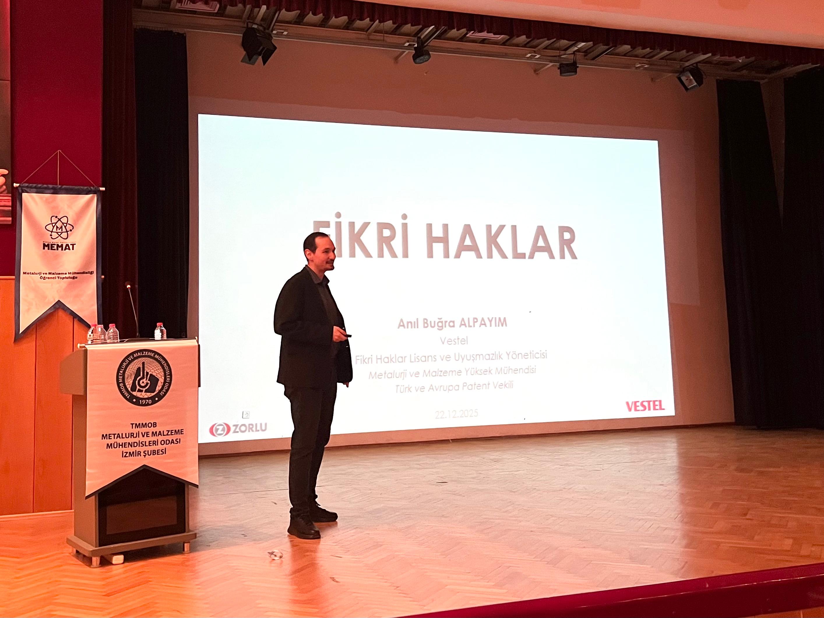 Etkinliğin ikinci oturumunda ise meslek deneyimlerini paylaşmak üzere Vestel Fikri Haklar, Lisans ve Uyuşmazlık Yöneticisi Anıl Buğra Alpayım bizlerle oldu. Programın devamında, Prof. Dr. Sedat Yurdakal ve Salih Alper Akalın’ın anlatımları eşliğinde EMUM laboratuvarlarına yönelik teknik bir gezi gerçekleştirildi.