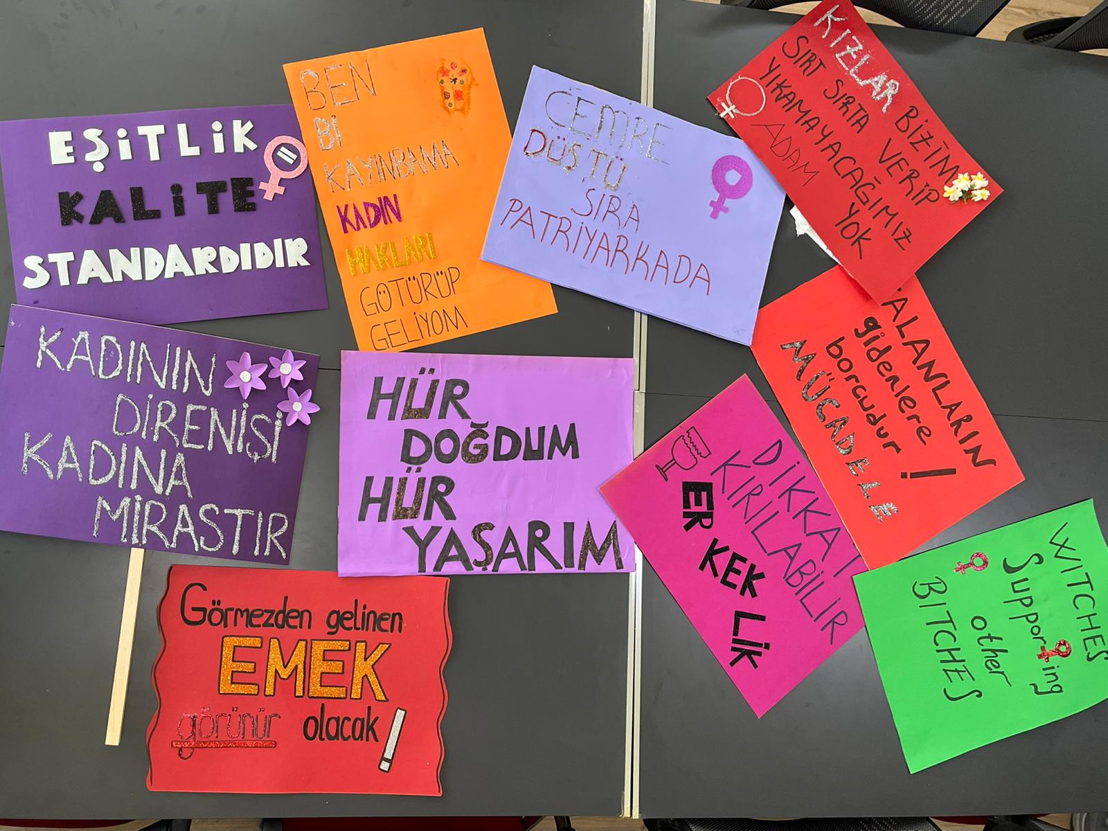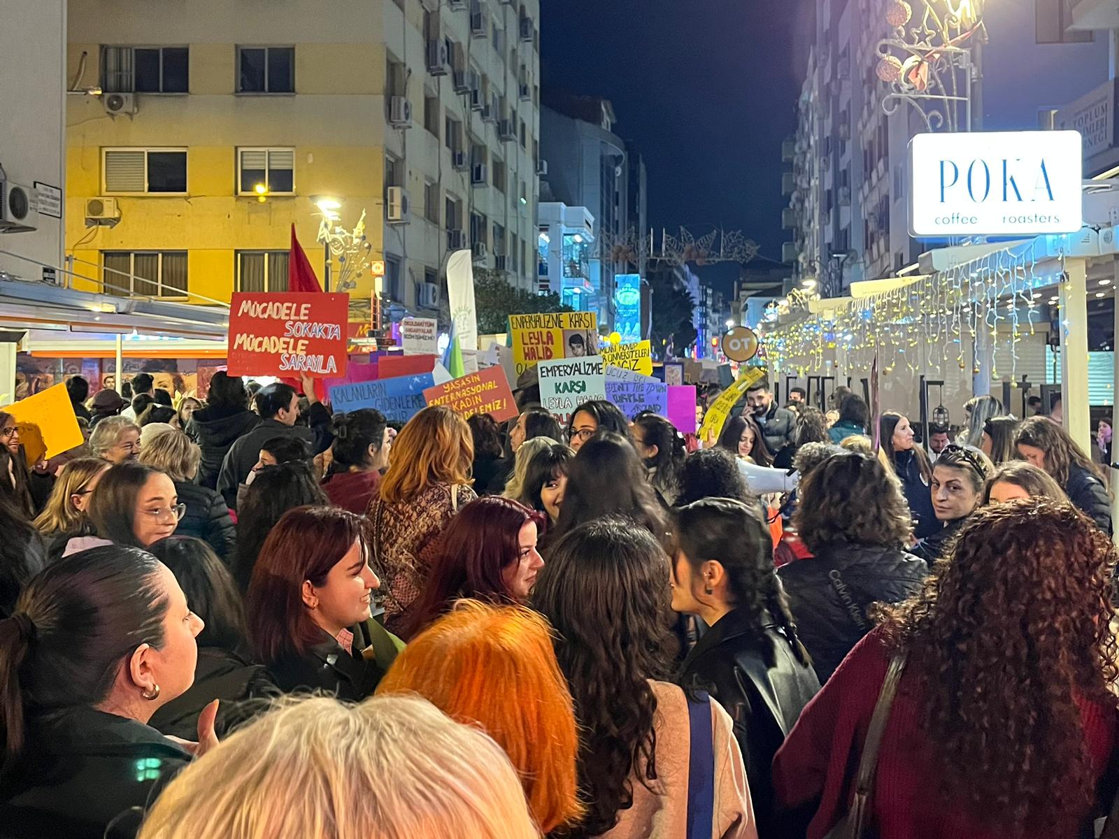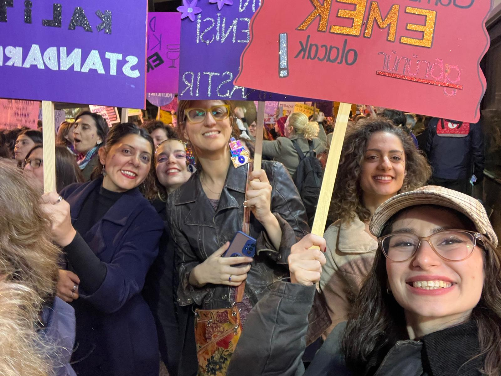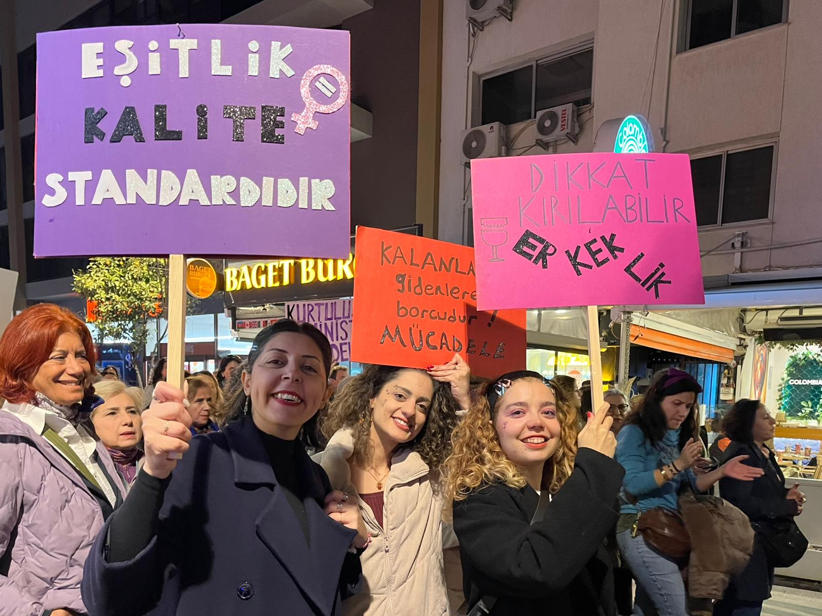 Atölyenin ardından akşam saatlerinde Alsancak’ta gerçekleştirilen Feminist Gece Yürüyüşü’ne katıldık. Hazırladığımız pankartlarla sözümüzü birlikte yükselttik.
