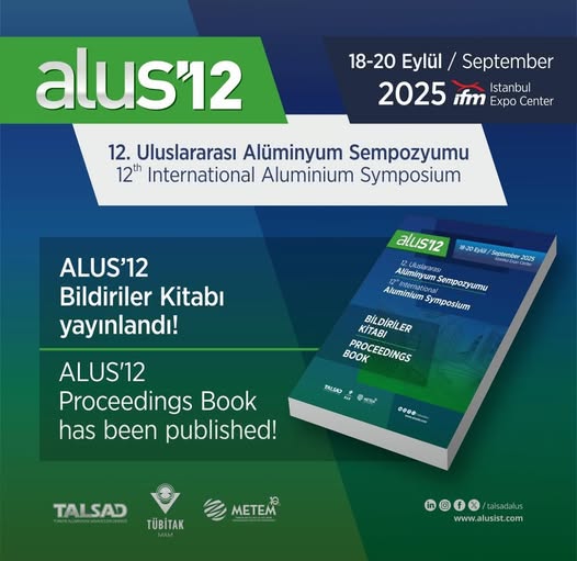 12. Uluslararası Alüminyum Sempozyumu, TALSAD Türkiye Alüminyum Sanayicileri Derneği, TÜBİTAK Marmara Araştırma Merkezi ve METEM TMMOB Metalurji ve Malzeme Mühendisleri Odası Eğitim Merkezi işbirliği ile 18-20 Eylül 2025 tarihlerinde Yeşilköy-İstanbul Fuar Merkezi'nde düzenlenecektir.