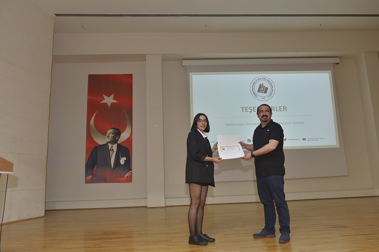 21 Nisan 2022 Perşembe Günü İzmir Dokuz Eylül Üniversitesi Metalurji ve Malzeme Mühendisliği Bölümünün daveti üzerine öğrencilere Mühendislik, Meslek ve Meslek Odaları tanıtımı yapıldı. İzmir Şubemiz çalışanımız Özgür DAŞDEMİR’in yaptığı sunumun arkasından Şube Başkanı Erhan Deniz ÇAĞIRAL ve Şube YK Üyesi Ahmet ŞENER ile birlikte öğrencilerin sorularını cevapladılar.