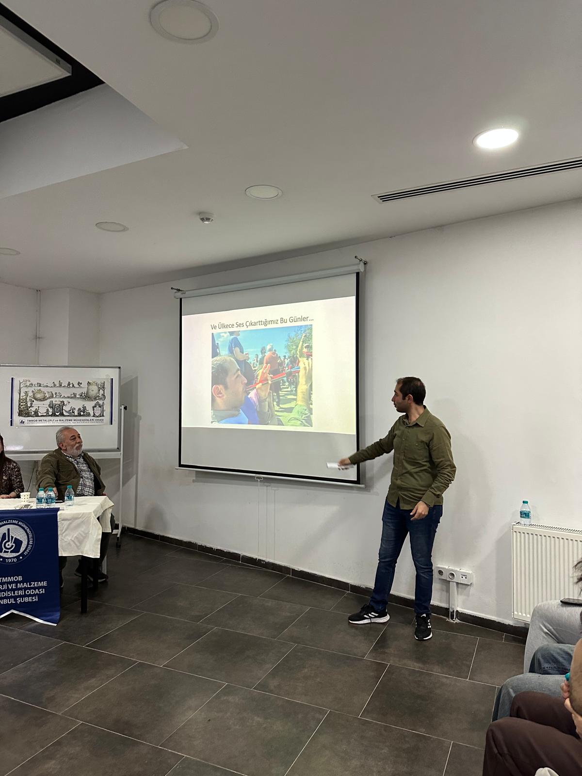 Şube Yönetim Kurulu Başkanımız Erman Car ve 32. Dönem Denetleme Kurulu Üyemiz Şefik Doğan da, meslekte yıllar içinde edindikleri deneyimleri paylaşarak öğrenci arkadaşlarımıza yol gösterici oldu. Her bir konuşmacı, farklı dönemlerde ama benzer yollardan geçildiğini vurgularken, içinde bulunduğumuz zorlu koşullara rağmen birlikte üretmenin ve dayanışmanın umudu yeşerttiğine dikkat çekti.