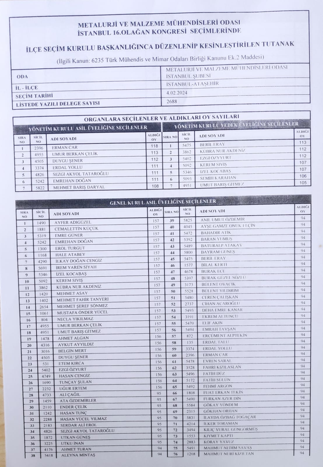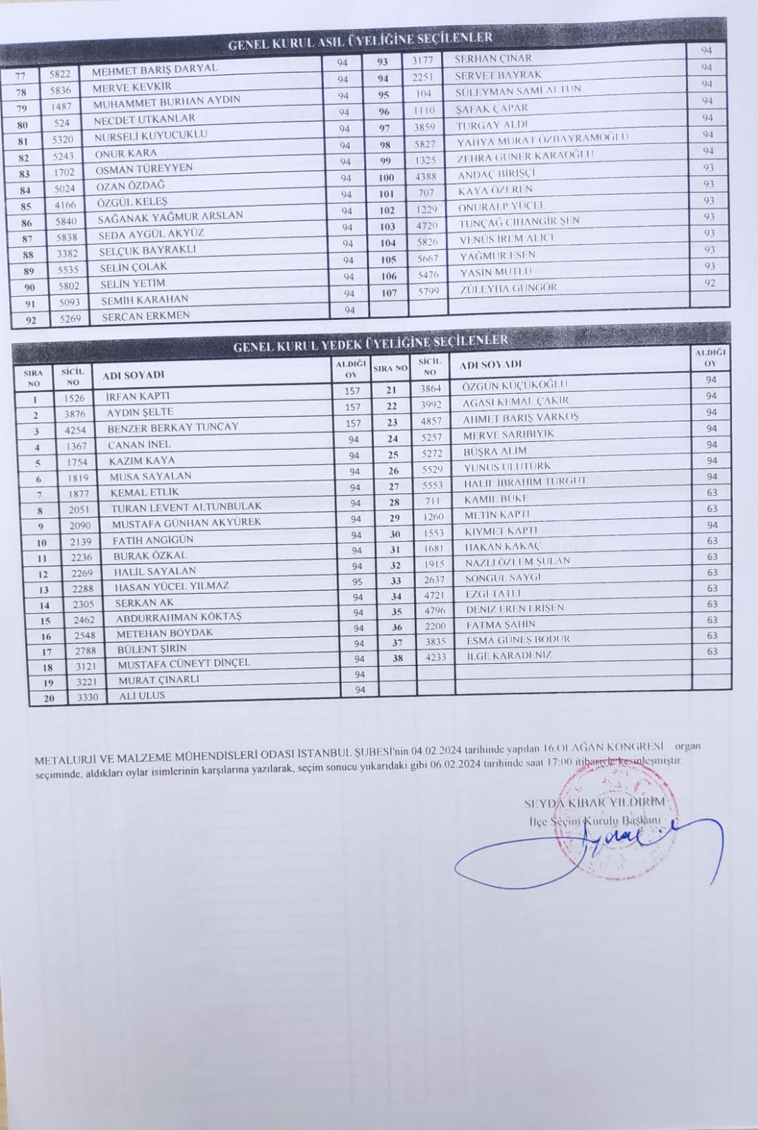 Birinci gün bitirildikten sonra 4 Şubat 2024 Pazar günü İstanbul Şubemizde yapılan seçim ile İstanbul Şube 16.Dönem Yönetim Kurulu üyeleri belirlendi.