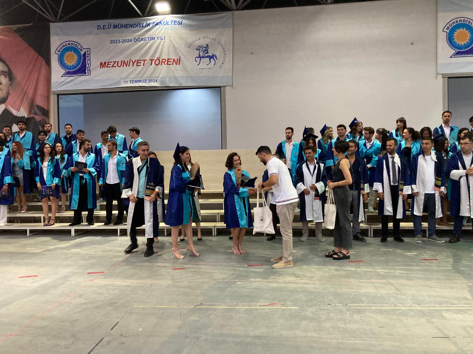 11 Temmuz perşembe günü Dokuz Eylül Üniversitesi Mühendislik Fakültesi mezuniyet töreni düzenlendi. Metalurji ve Malzeme Mühendisliği bölümünden derece ile mezun olan yeni meslektaşlarımız, Şube Yönetim Kurulu Başkanımız Erhan Deniz ÇAĞIRAL ve 2. Başkanımız Özge BİNGÖL tarafından mesleğe hoş geldin hediyeleri ile tebrik edildi.