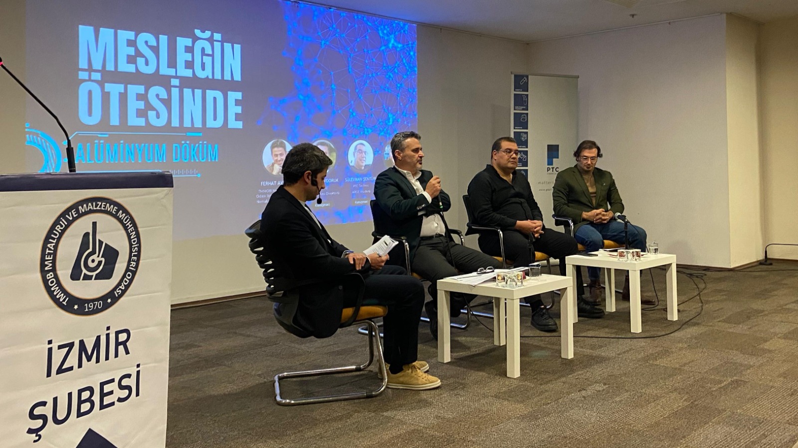 İzmir Şubemizin düzenlediği "Mesleğin Ötesinde" serimizin ikinci oturumu olan "Alüminyum Döküm" başlıklı söyleşi, 6 Aralık 2024 tarihinde Tepekule İş Merkezi'nde, PTC Chemicals sponsorluğunda yoğun katılımla gerçekleştirildi. Moderatörlüğünü Şube Yönetim Kurulu Üyemiz Ferhat Aydoğan'ın üstlendiği bu söyleşimizde, sektörden Döktaş Jant İş Ünitesi Direktörü Doğan Alpdoruk, PTC Technic AR-GE Müdürü Süleyman Şentürk ve Mars Kaplama Genel Müdürü Metehan Gökçe konuşmacı olarak yer aldılar.