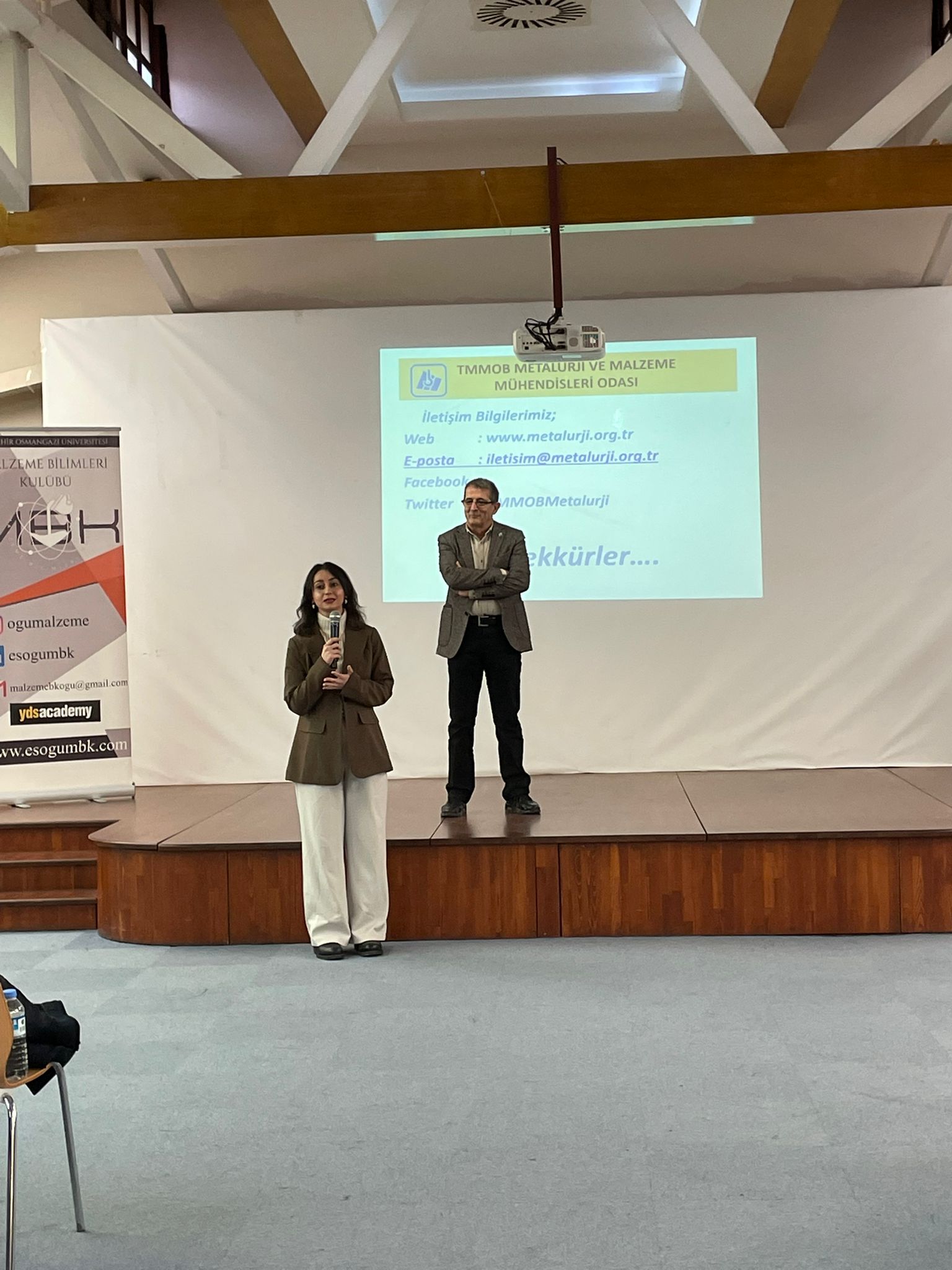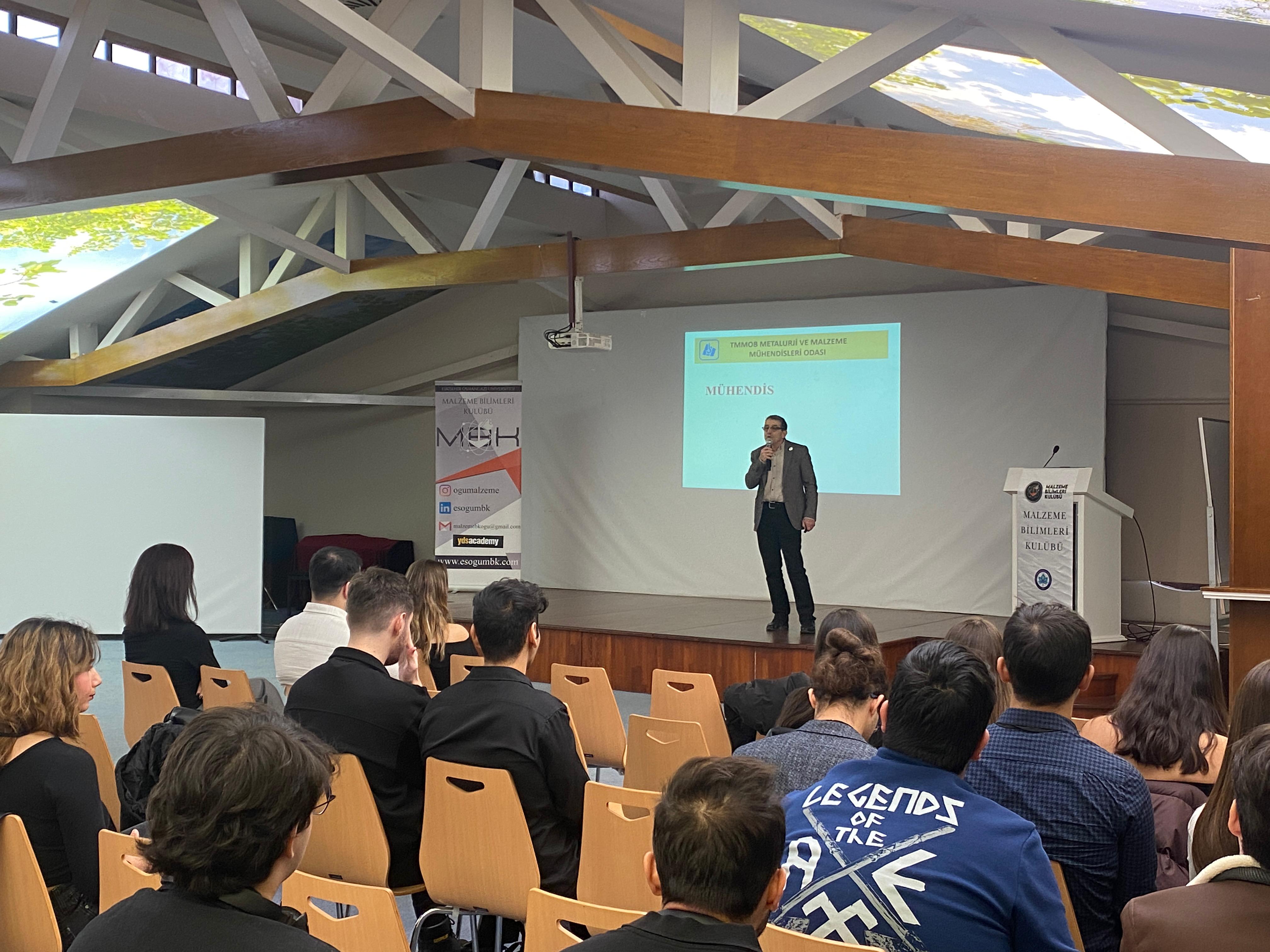 Oda Başkanımız A. İrfan Türkkolu, etkinlikte "Meslek, Meslektaş, Meslek Odası" başlıklı kapsamlı bir sunum gerçekleştirdi. Sunumda, Metalurji ve Malzeme Mühendisleri Odası’nın misyonu, mesleğin ülkemizdeki ve dünyadaki önemi, ayrıca sektördeki güncel gelişmeler ele alındı. Bunun yanı sıra, meslek odalarının mühendisler için sağladığı destekler ve meslek hayatında karşılaşılabilecek fırsatlar detaylı bir şekilde paylaşıldı.