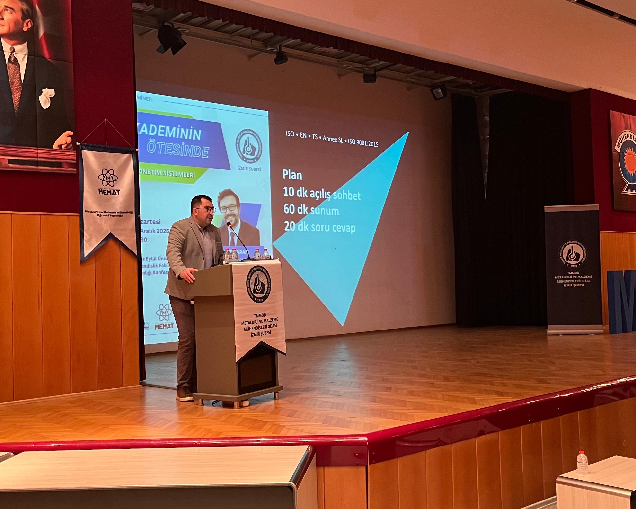 22 Aralık Pazartesi günü, Dokuz Eylül Üniversitesi Metalurji ve Malzeme Mühendisliği Topluluğu ile ortak olarak düzenlediğimiz “Akademinin Ötesinde: Kalite Yönetim Sistemleri” etkinliğimiz kapsamında; İzmir Katip Çelebi Üniversitesi, İzmir Yüksek Teknoloji Enstitüsü ve Muğla Sıtkı Koçman Üniversitesi’nden öğrencilerimizi Dokuz Eylül Üniversitesi’nde bir araya getirdik.