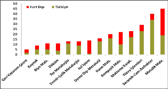 Biyo-malzemeler, Demir Çelik Metalurjisi, Demir Dışı Metaller Metalurjisi, Döküm, Geri Kazanım ve Çevre, Isıl İşlem, Kaynak Metalurjisi, Kompozit Malzemeler, Malzeme Karakterizasyonu, Metalik Malzemeler, Nano-malzemeler, Seramik-Cam-Refrakter Malzemeler, Toz Metalurjisi, Yüzey İşlemleri başlıklarında toplam 26 sözlü sunu oturumu gerçekleştirilmiştir. Bildirilerin oturum başlıklarına göre dağılımı Şekil 1'de verilmiştir.