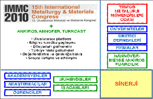 TMMOB Metalurji Mühendisleri Odası tarafından düzenlenen 15.Uluslararası Metalurji ve Malzeme Kongresi, eş zamanlı gerçekleştirilen Ankiros Döküm Kongresi ve ANKIROS, ANNOFER, TURKCAST fuarları ile birlikte büyük bir sinerji yaratmaktadır (Şekil 2). Akademisyenler, araştırmacılar, öğrenciler, mühendisler ve iş adamlarının katılımıyla gerçekleşen bu uluslararası etkinlik, bilgi ve tecrübe paylaşımını, dünyadaki ve ülkemizdeki teknolojik ve sektörel değişme ve gelişmelerin değerlendirilmesini, meslektaşlar arasındaki iletişimin ve sosyal etkileşimin arttırılmasını sağlamaktadır.
