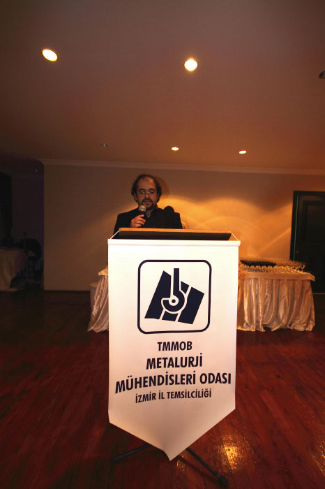 TMMOB Metalurji Mühendisleri Odası İzmir İl Temsilciliği, Dokuz Eylül Üniversitesi Rektörlüğü Çatı Restaurant VIP Salonu'nda organize edilen açılış töreni ve kokteyl ile açıldı. Açılış organizasyonumuz Metalurji Mühendisleri Odası Ankara, İstanbul ve Bursa yönetim kadromuz ve temsilcilerimiz, İzmir ve diğer kentlerimizden gelen meslektaşlarımızın katılımlarıyla gerçekleşti. Diğer taraftan, TMMOB İzmir İl Koordinasyon Kurulu Üyeleri, diğer oda temsilcileri ve İzmir' deki dostlarımız Odamıza desteklerini iletmek amacıyla açılış kokteylimize katılımda bulundular. Güncel sorunların ve beklentilerin konuşulduğu törende, İzmir İl Temsilciliği Açılışı'na geçildi. İzmir İl Temsilcisi Orkun Koruk açılış konuşmasında, Demir-Çelik Sektörü'nün kalbi olan, otomotiv, beyaz eşya ve diğer sektörlerde çalışan çok sayıda Metalurji Mühendisinin bulunduğu İzmir ilinde, oda çalışmasının mesleki sorunlar ve demokratik mücadele açısında bir ihtiyaç olduğunu vurguladı. Ardından Bülent Önay, İrfan Akyol, Alper Kaya ve Serdar Öztürk' ün yürütme kurulunda bulunduğu İzmir İl Temsilciliği bünyesinde yapılacak çalışmalar hakkında bilgi vererek, sözü Temsilcilik Yürütme Kurulu Üyesi Doç. Dr. Bülent Önay' a devretti.